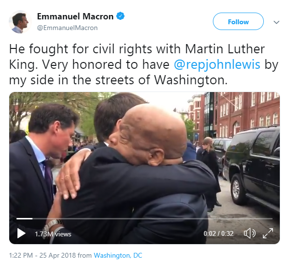 Following Macron's historic speech in Washington this week, a New York Times reader wondered if America might subcontract him so that he could be US president too. This idea may not be as far-fetched as it might seem, and is being seriously considered. The enabling technology is readily available ... see a Macron tweet sample below.